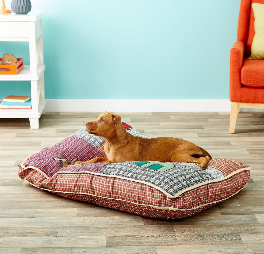 Aspen Pet Quilted Novelty Pillow Dog Bed w/Removable Cover, Color Varies