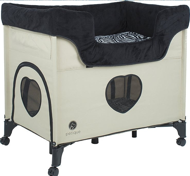 Give your pet the option to extend your bed or cuddle up in his own hideaway with the Petique Bedside Lounge Dog & Cat Bed. He’ll love being able to be close to you while also having his own bed to spread out. And if he wants to feel the comfort of his own cubby, he can curl up on the lower bunk with three walls that can be zipped up for an extra sense of security or unzipped for free range of movement. Featuring two mattresses, this versatile bunk bed provides your pet with unparalleled options at naptime.